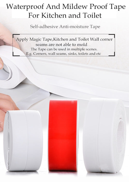 PVC Waterproof Self-Adhesive Sealing Wonder Tape Strip for Bathroom Bathtub Toilet Washing Basin Wall Kitchen Sink Stove Edge Countertop Floor Caulk