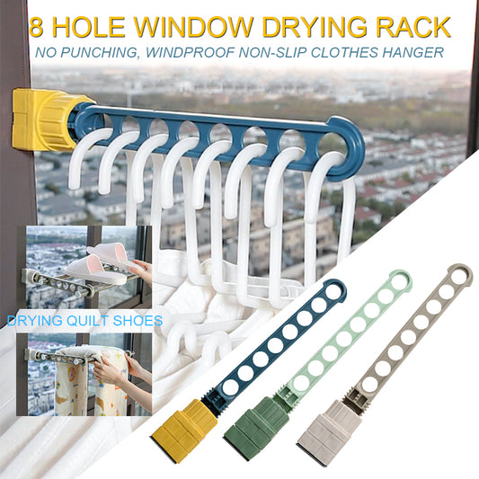 8-Holes Drying Rack Clip on Window Frame Balcony Door Cabinet Clothes Laundry Hanger Hanging Rod Stand Shelf
