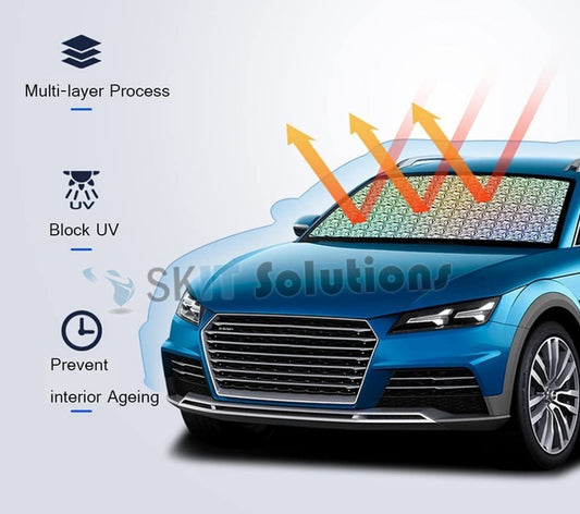 Retractable Car Front Window Sunshade with 3 Suction Cups, Adjustable WindShield SunShield Curtain Sun Block UV Rays Protection Sun Shade