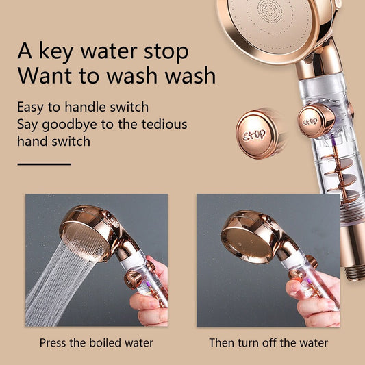 High Pressure Turbocharged SPA Shower Head w/ 3 Gear Modes & Filter, Spiral Turbo Charged Showerhead