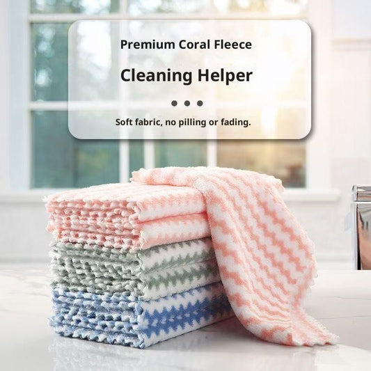 Coral Fleece Dish Cloth Bamboo Fiber Anti Oil Lint Free Quick Dry Kitchen Cleaning Towel Essential