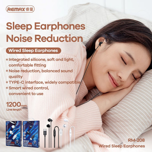 Remax RM-208A Type-C Sleep Wired Earphone USB-C In-Ear Microphone HD Music Call for Mobile Phones