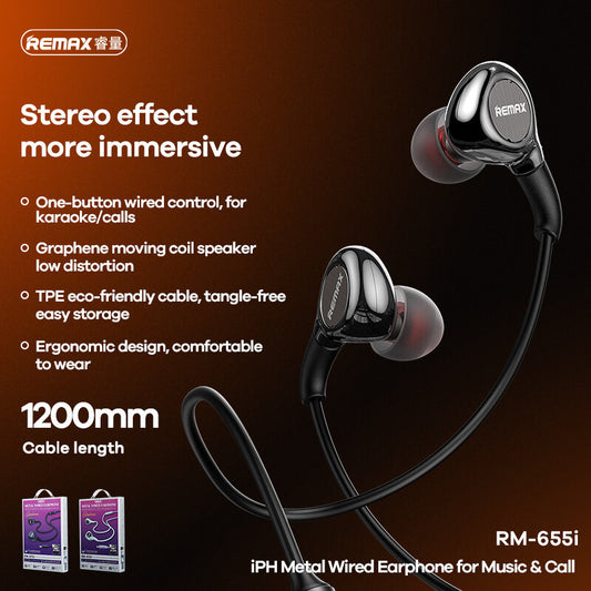 Remax Metal Wired Earphone Rm-655I (For I-Phone) Hd Sound Quality For Call Music with Volume Control