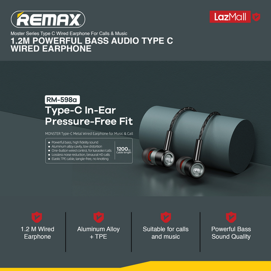 【SKIT SG】Remax RM-598a MONSTER Series Powerful Bass Type-C Metal Wired Earphone for Music & Call