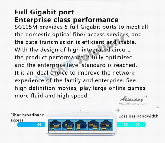 Mercury SG105C 5 Port Gigabit Ethernet Network Desktop Switch 10/100/1000Mbps RJ45 LAN Plug Play Hub