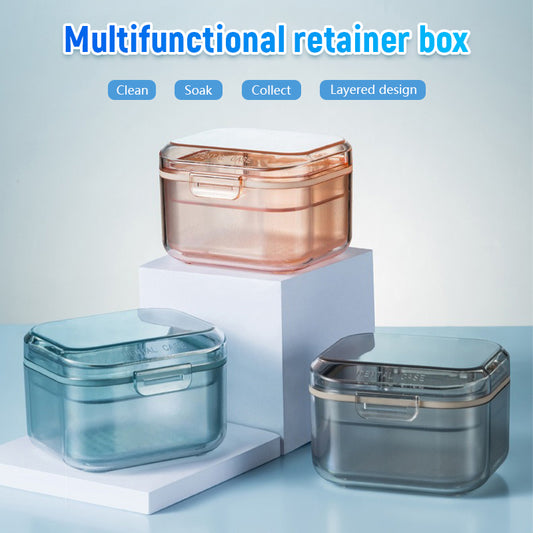 Three Layer Retainer Box for Invisible Braces Dentures Mouth Guard Soaking Portable Orthodontic Storage Case