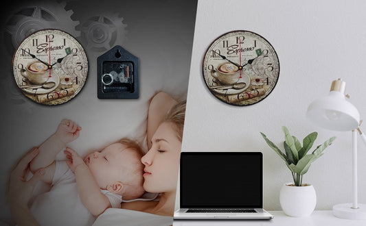 12" Vintage Retro Wall Clock Silent MDF Wooden Quartz Rustic Kitchen Living Room Decorative Battery