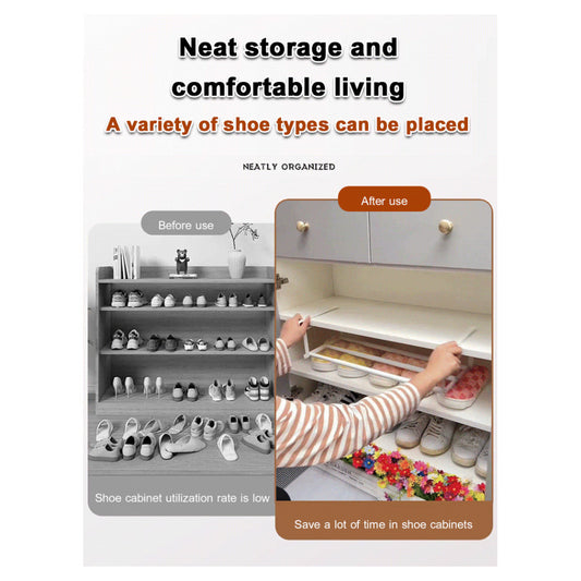 Retractable Shoe Rack Adjustable Storage Organizer Layered Partition Space-Saving Cabinet Wardrobe