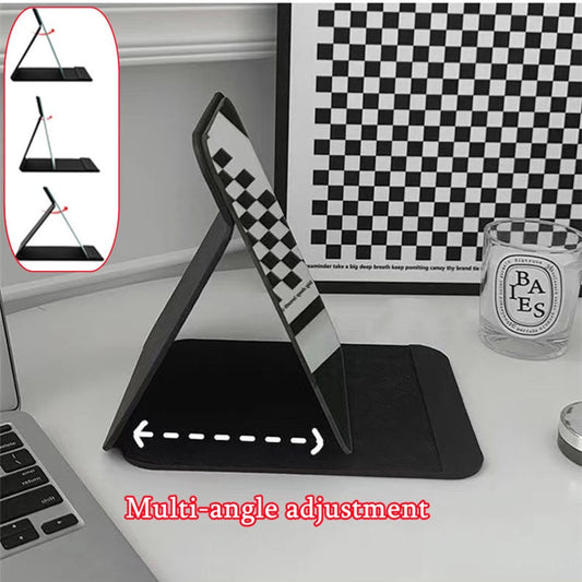 Foldable PU Leather Makeup Mirror Desktop Portable Pocket Cosmetic Travel Vanity Rounded Corner