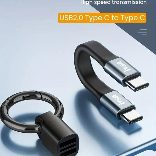 IVON CA90 Mini Clip-On Charge & Sync Cable w/ Key Ring PD65W/PD27W 65W USB-C to USB-C/to IOS 27W