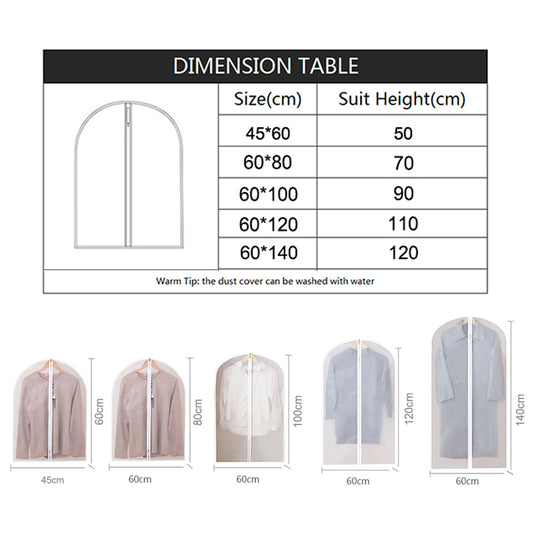Clothes Organizer Storage Bag Garment Zip Dust Cover Suit Dress Clothing Plastic Cloth Protector