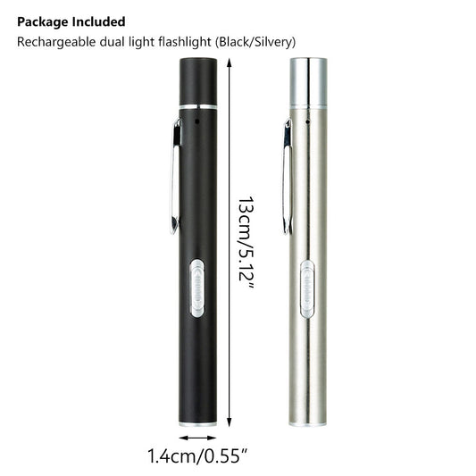 USB Rechargeable Medical Pen Torch Penlight w/ Dual Inspection Light EMT Nurse First Aid Flashlight