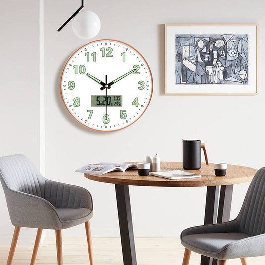 12 Inch Luminous Minimalist Designer Wooden Quartz Wall Clock Dark Glowing Silent Non-Ticking Home