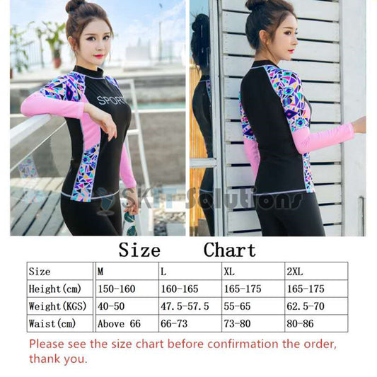 2 Pcs/Set Full Body Women Long Sleeve Rash Guards Swimming Pants Diving Suit Swimsuit Printing Swimwear Sunscreen Suits