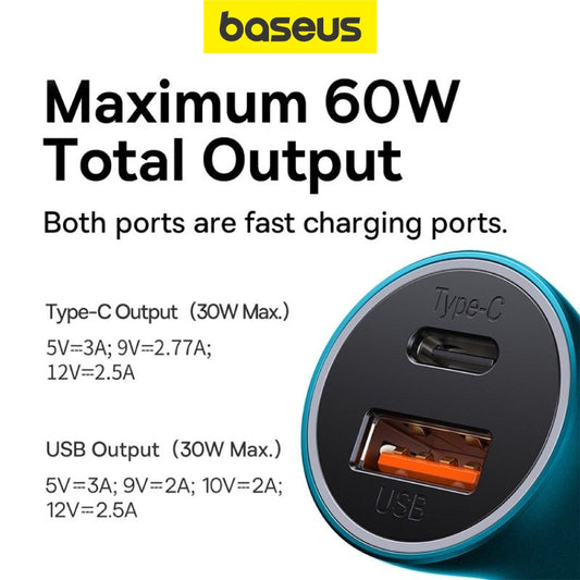 Baseus Golden Contactor Max Dual Fast Charger Car Charger U+C 60W High Power USB + Type C