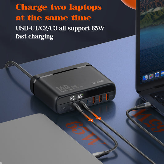 LDNIO A6140C GaN 140W Travel Wall Charger Adpater PD QC3.0 Super Fast Charging USB Type C 6 Port For Laptop Phone Tablet