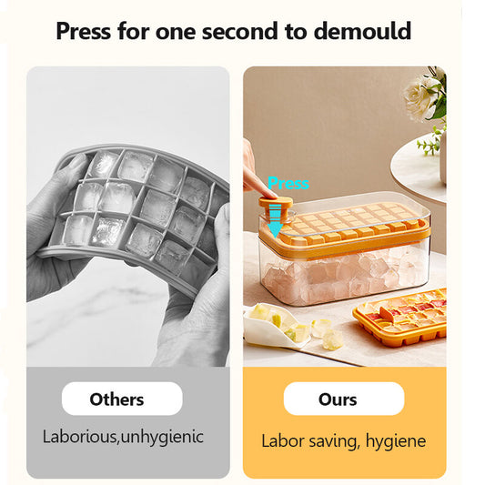 Ice Making Box Ice Cube Maker Tray Ice-Making Mould Storage Box Tool Gadget One Click Demolding Stackable Ice Grid Mold