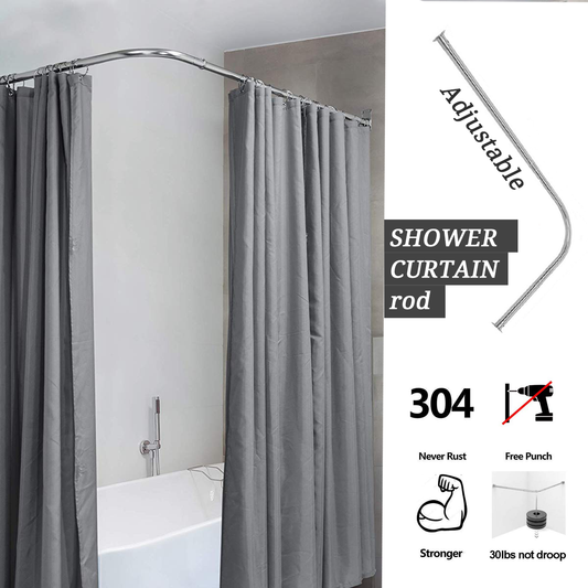 Adjustable L Shaped Bathroom Shower Curtain Rod Extendable Stainless Steel Bathtub Curved Corner Railing Pole Telescopic