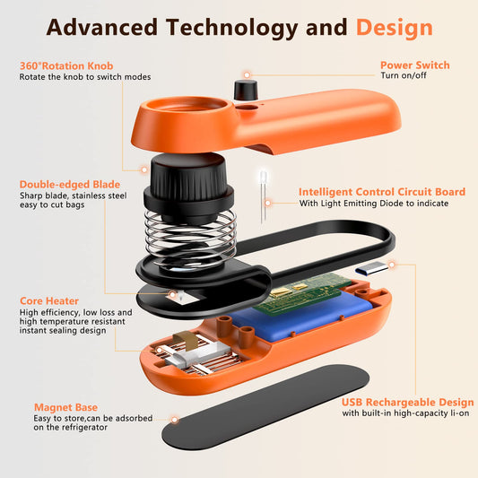 2IN1 Mini Heat Bag Sealing Cutter Machine Hand Sealer Food Resealer Device Seal Store Snack Plastic Bag USB Charging