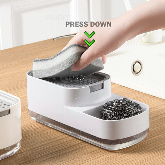 Upgraded 2in1 Dish Soap Dispenser Cleaning Ball Storage Box FREE Sponge Press Type Manual Kitchen Detergent Dispensing
