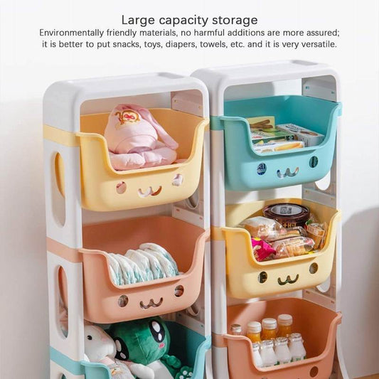 2/3/4 Tier Children's Toy Storage Rack Cabinet Organizer Kids Rolling Cart Activity Space Saver Shelf w/ Wheel Casters