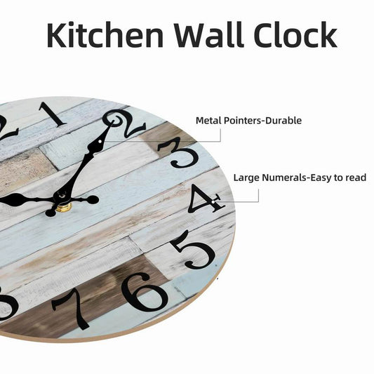 12' Vintage Retro 30cm Wall Clock 12 Inch Silent Non-Ticking Wooden Rustic Style Decorative for Living Room Kitchen Home
