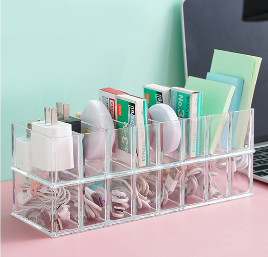 Clear 8 Compartments Plastic Cable Wire Storage Box 8 Grids Organiser Case Container with Lid Cover Free 10pc Cable Tie