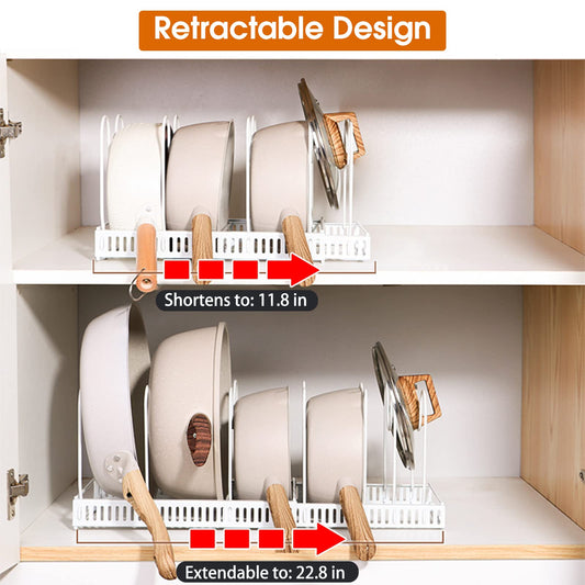 Adjustable Pot and Pan Organizer Expandable Rack Lid Holder Organiser Retractable Storage for Kitchen Cabinet Cookware