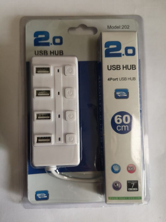 4 Port USB Hub 2.0 Hi-Speed with Switch 60CM Computer Laptop Tablet Phone Very Compatible
