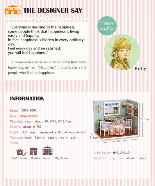 CuteRoom Happy Kitchen★Miniature Doll House Dollhouse★DIY Gift Wooden Handmade