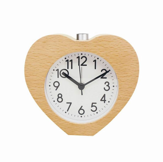Wooden Heart Alarm Clock Silent Night Light No Ticking Backlight Snooze Clocks