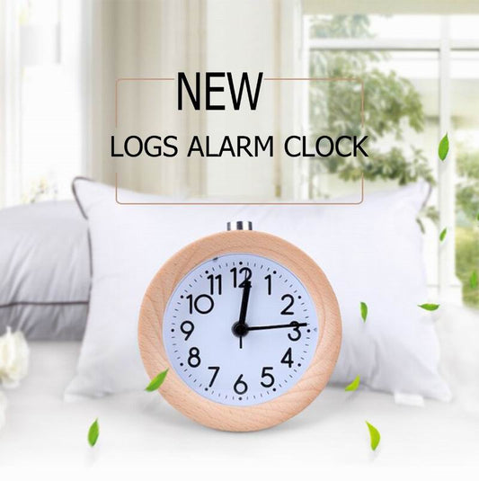 Wooden Round Alarm Clock Silent Night Light No Ticking Backlight Snooze Circular