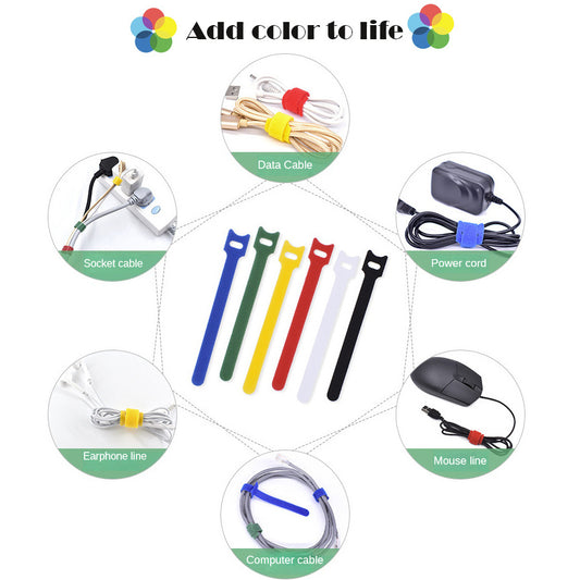 60pcs T-Type Velcro Nylon Cable Ties Reusable Adjustable Hook Loop Wire Management Cord Organizer