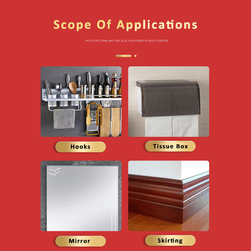 - Between the product and the wall 0.5mm depth cure per hour. No-nail adhesive needs to be in contact with air to react and cure.