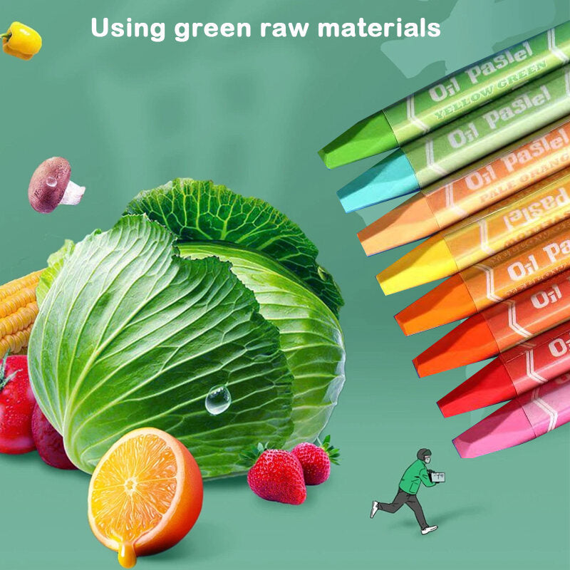 - This box contains oil pastels, colored pencils, watercolor cakes and marker pens.