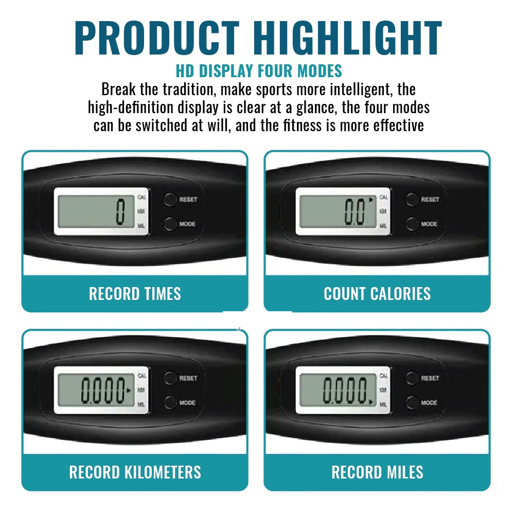 - 𝐒𝐦𝐚𝐫𝐭 & 𝐃𝐢𝐠𝐢𝐭𝐚𝐥: Our skipping rope is your personal fitness tracker. The HD digital display records jumps, calories burned, distance covered, and your workout duration.