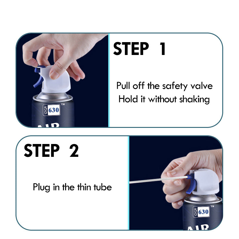 - ✔️ High-pressure liquid gas blend blasts away microscopic dust