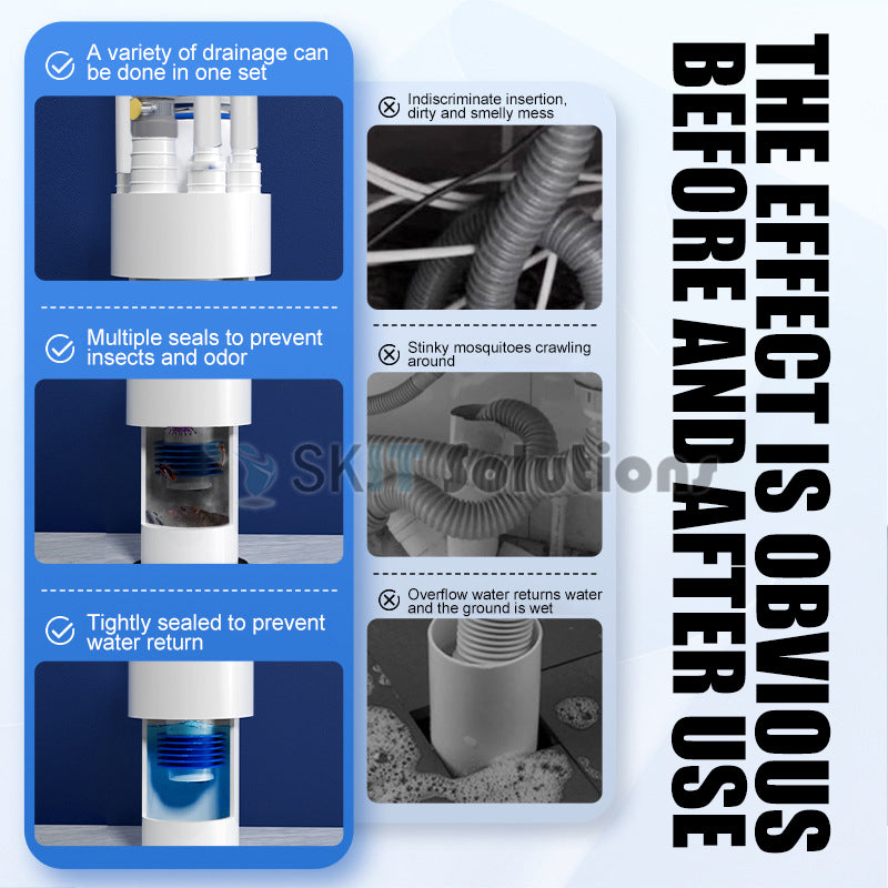 5-Ways Drain Pipe Sealing Plug Sewer Seal Deodorant Drainage Backflow Preventer Anti-Odor Drainer Kitchen Bathroom