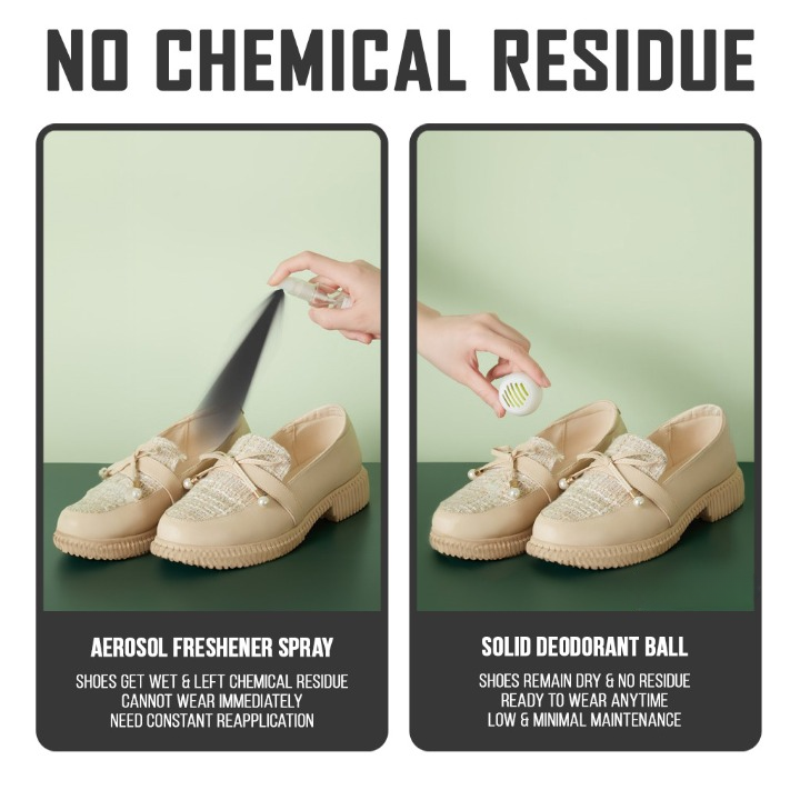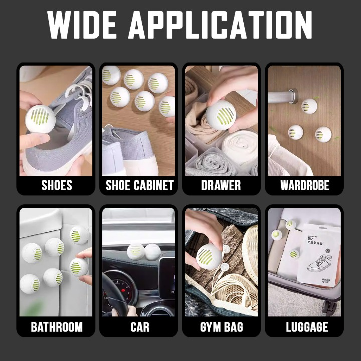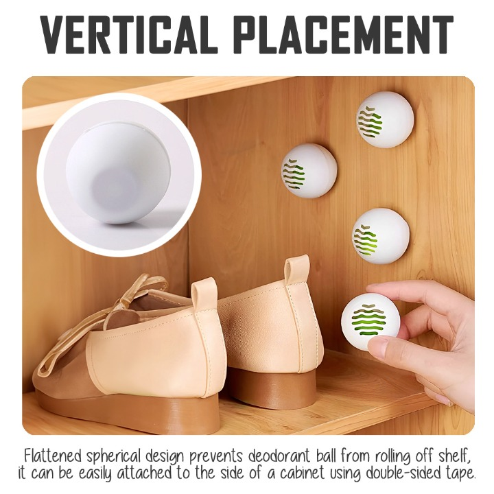Shoe Deodorant Ball available in 6pcs or 8pcs packs, with optional traceless double-sided tape.