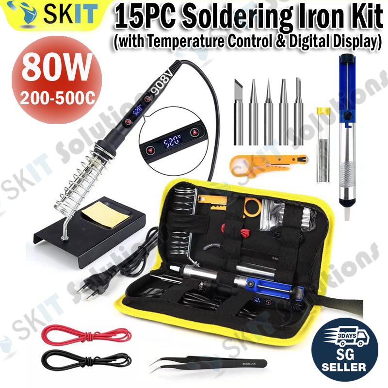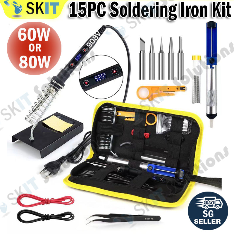 60W/80W Soldering Iron Kit 15pcs Adjustable Temperature Welding Tool Set Accessories Tips EU Plug