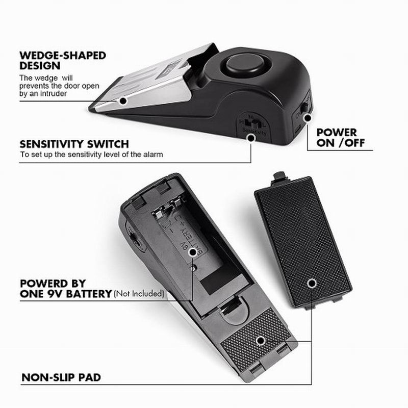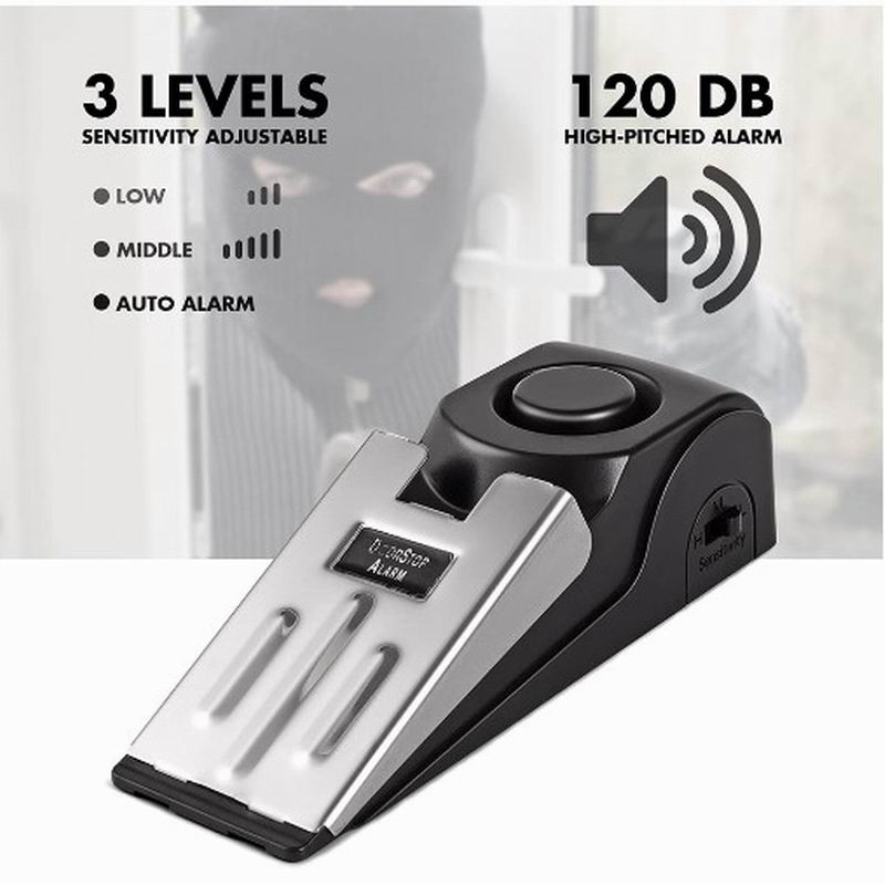 - Anti-Theft Security Door Stopper Alarm Sensor Lightweight 120 Decibels Door Stop for Home Travel Floor Wedge Doorstop