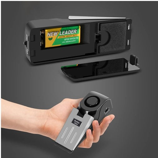 - The door stop alarm will provide you with safety when traveling or on business.