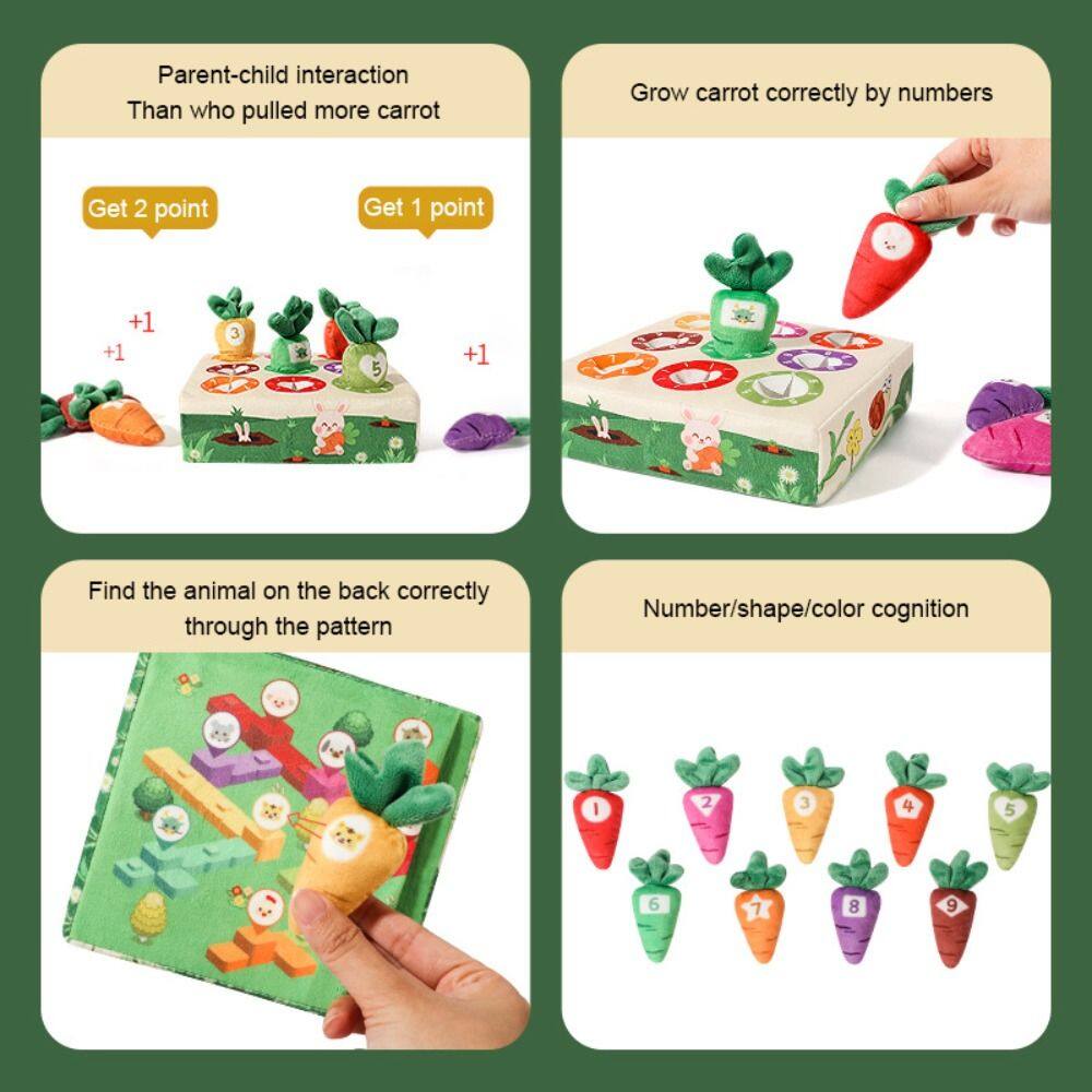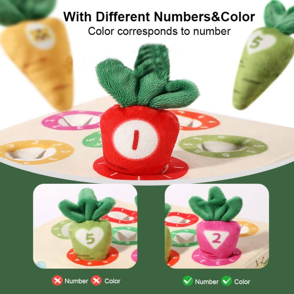 - 6.With Numbers:The small radish is embroidered with numbers. The mother teaches while playing with the baby. The baby is happy to learn. As an early education enlightenment and digital color cognitive teaching tool, it can improve the baby's hand eye coordination ability and enhance the parent-child interaction.