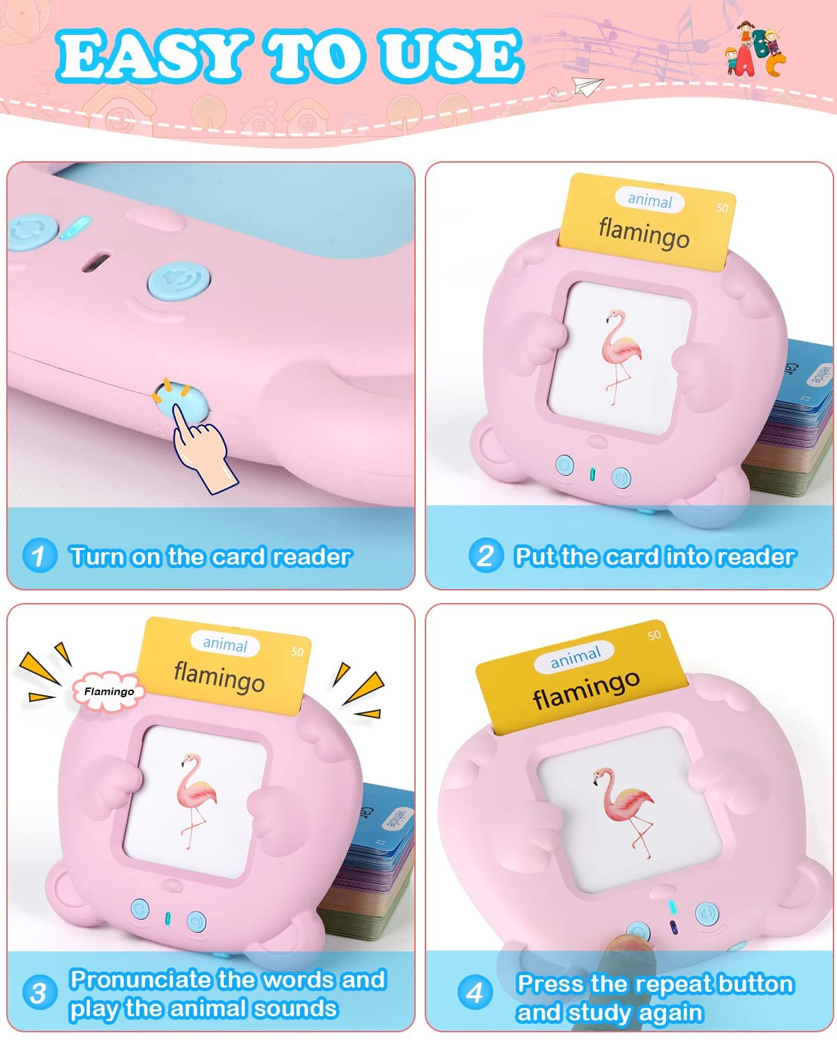 [Easy to operate]-No network required, put the card into the card reader slot and the card reader will pronounce. When inserting the animal card or transport card, the card reader will play the sound of real animals or transport. Press the repeat button to repeat the pronunciation and sound effect. Great autism toys and speech therapy toys.