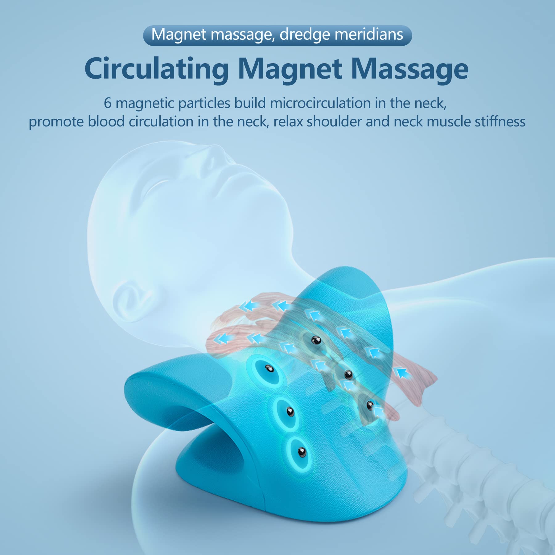 - Magnetic Therapy for Neck Pain Relief - The massage points on the neck traction surface are designed to perfectly fit your neck acupuncture points and provide you with a comfortable physical massage. The magnets embedded in the massage points form a micro magnetic field in the neck, which can promote blood circulation in the neck, relieve neck pain and muscle pressure, and help relieve fatigue.