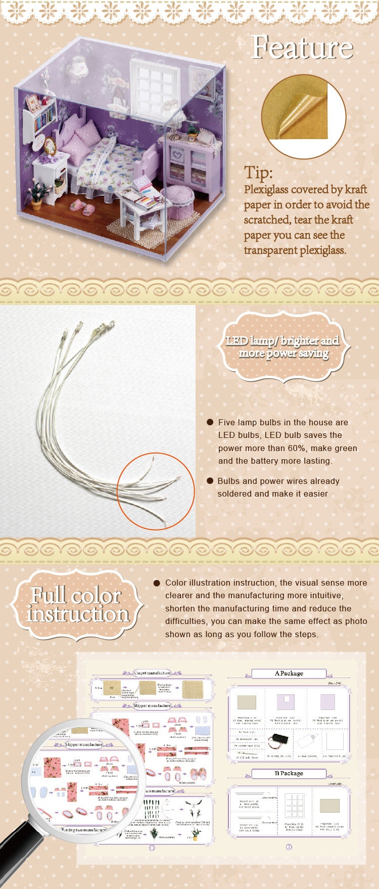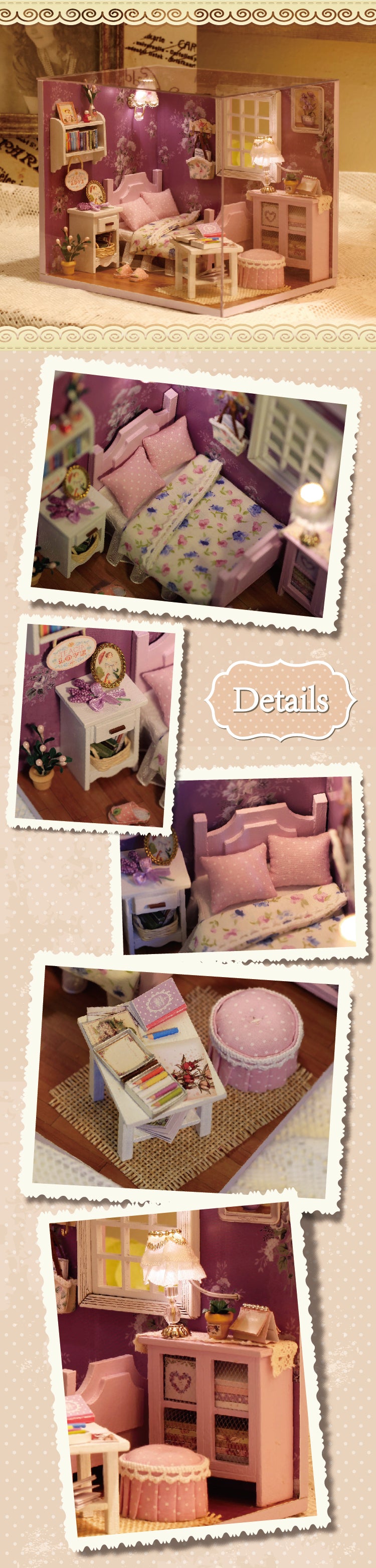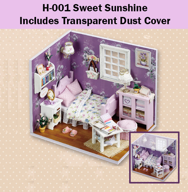 · 100% Brand New in Retail Box Packaging · High Quality · Cute Room Sunshine Series Sweet Sunshine · Model: H-001 (Sweet Sunshine) · Package includes transparent dust cover · Create your own bedroom model · After creating your model, it comes to live with cute furniture, and a transparent dust cover to protect your great model · Dust cover helps to store your model, and also prevent scratch or damages