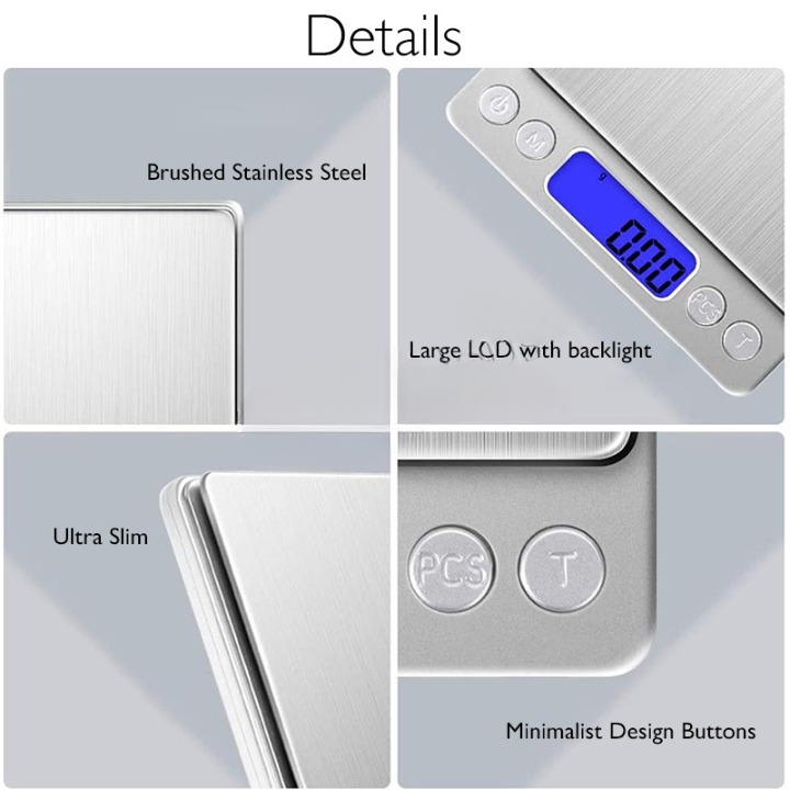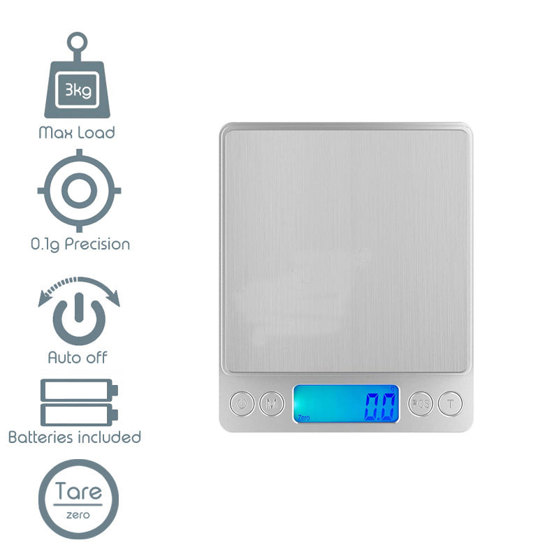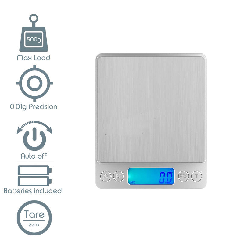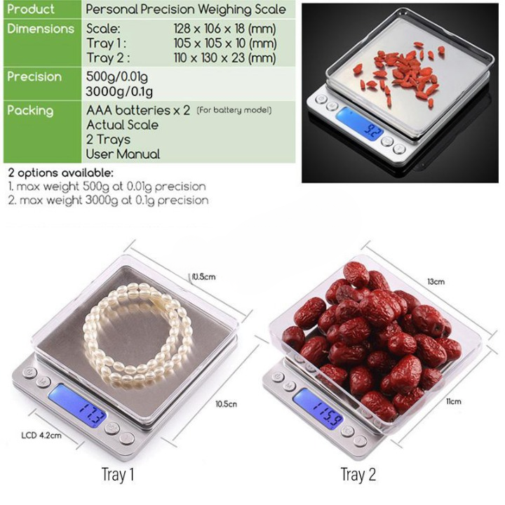 - Available Types: 0.01g/500g Battery or 0.1g/3000g Battery