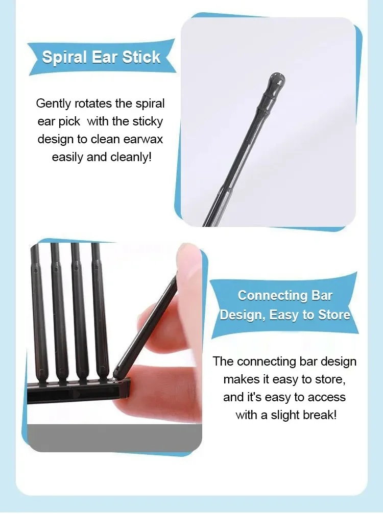 - Product Name: Ear Swabs Disposable Sticky Pick Spiral Tips Earwax Removal Ear Spoon Remover Tool Kit Nasal Cleaner Swabs Pick Spiral Tips Wax Rotational Viscosity Cleaner Ear Stick