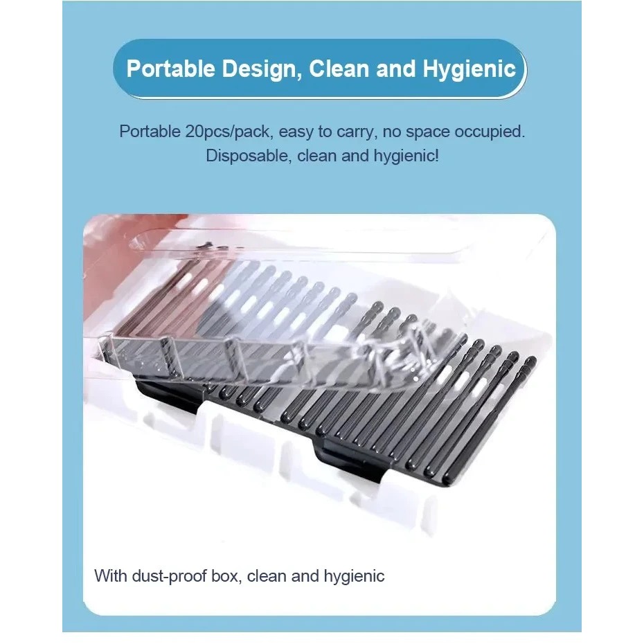 - Toddler to adult can keep ears clean. 20 sticks in a case.