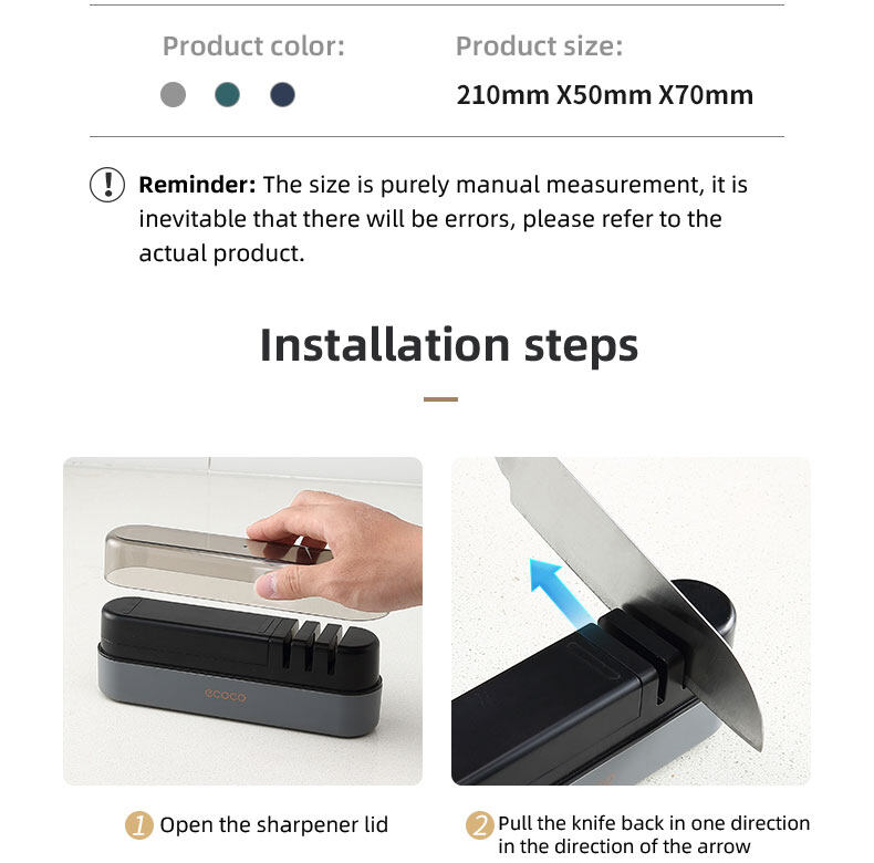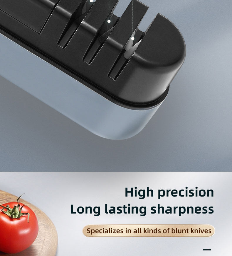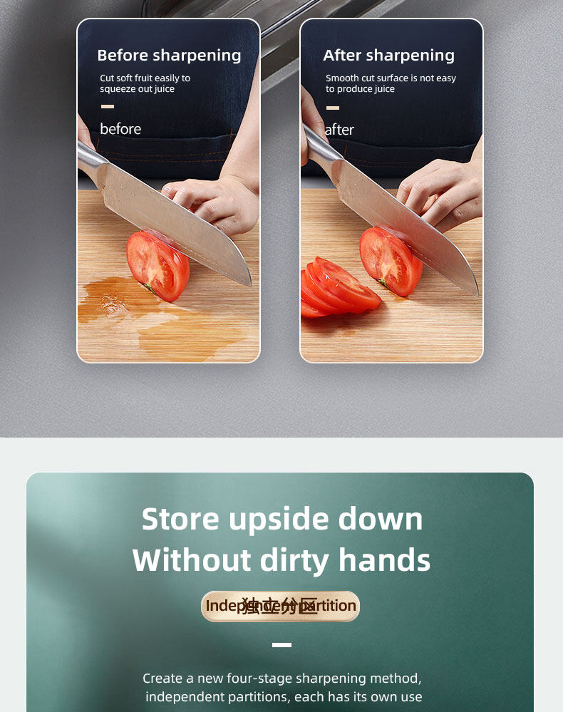 - The four-stage design of cutting edge, rough grinding, fine grinding, and fine grinding can solve dull knives without worry